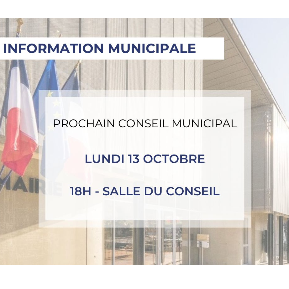 ▶️ Prochain Conseil Municipal : lundi 13 octobre, 18h à la salle du Conseil de la Maison des Services.