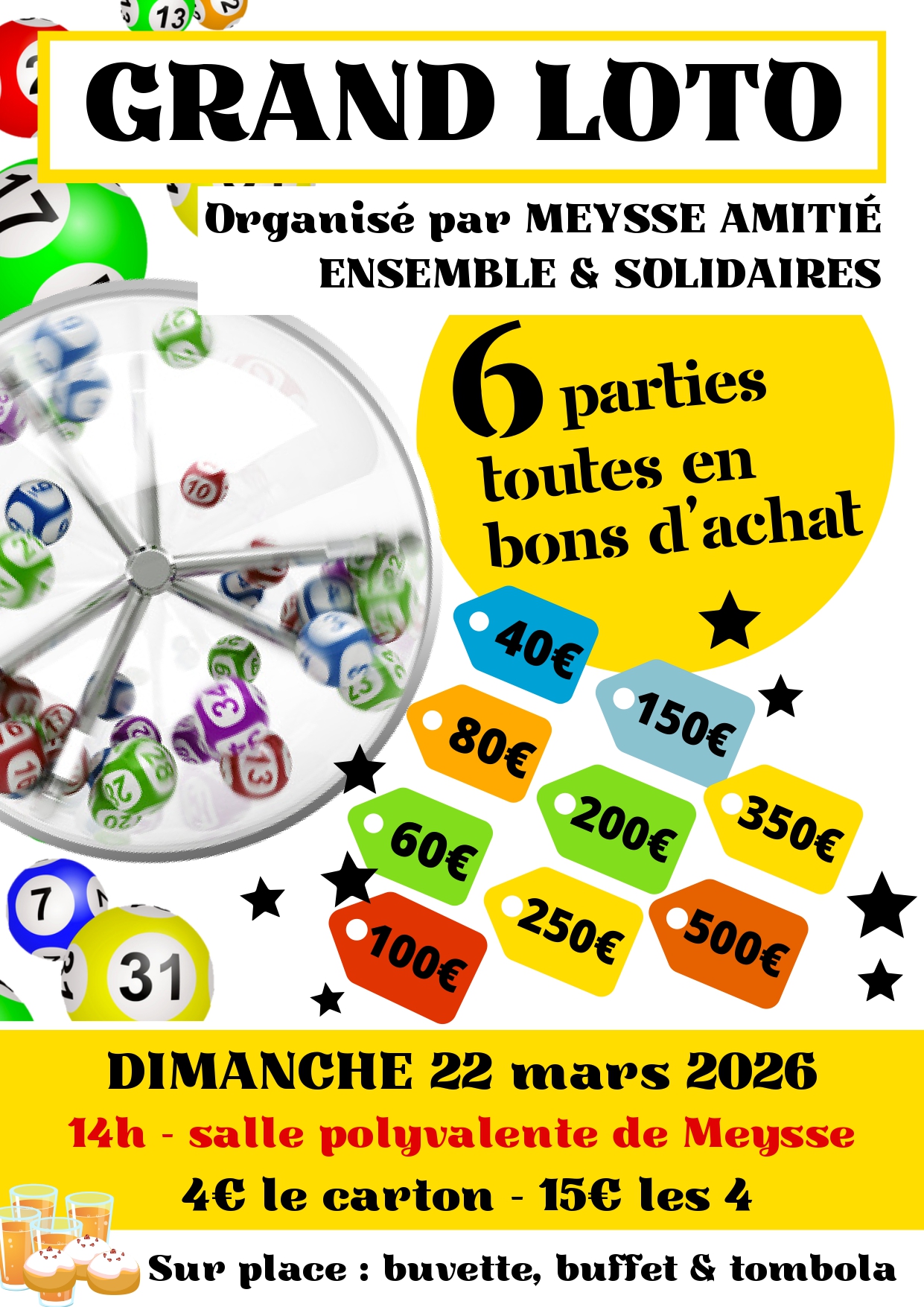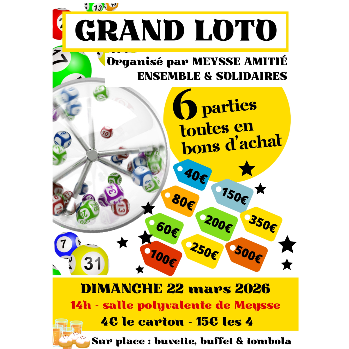 Meysse Amitié, Ensemble et Solidaires organise un grand loto le dimanche 22 mars 2026.